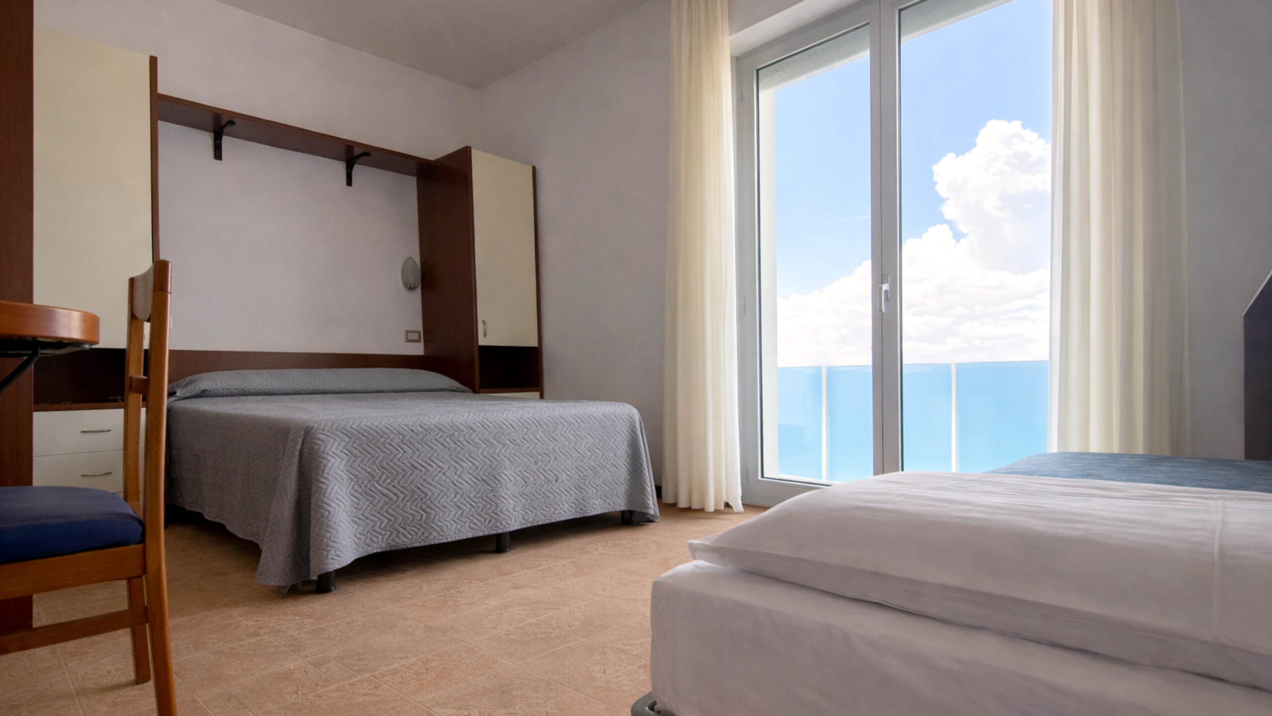 Tutte le nostre camere sono ampie, spaziose e con un terrazzo panoramico, per vivere una vacanza confortevole e rilassante, sempre vista mare!